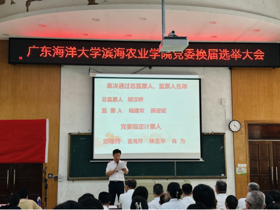 7月10日上午,williamhill英国党委在湖光校区兴农楼109多功能教室召开换届选举大会。学院党委书记郑殿峰,学院院长马驿,党委副书记王继全,副院长沈雪峰、刘文超,华南中心副主任江行玉,学院全体党员,预备党员、民主党派人士代表参加会议,会议由学院院长马驿主持。