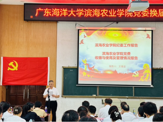 为建设教学研究型学院提高人才培养质量而努力奋斗》的工作报告。报告全面回顾了2019年12月第四次党员大会以来的主要工作,郑殿峰书记指出,在学院党委学校党委的正确领导下,在各有关职能部门的大力支持下,在全院广大党员干部和师生员工共同努力下,学院不断加强党的建设,发挥党组织政治核心作用,圆满完成了上次党员大会确定的目标任务。同时,客观分析了面临的挑战和存在的问题。最后,明确提出今后五年学院将以本科教育为主体,大力发展研究生教育,全面深化教育教学改革,凸显滨海农业学科群四大方向特色,进一步完善教学基础设施配套、师资队伍结构优化的教育教学体系,突破博士点、提高平台层次、办学质量和办学效益,到2028年争取建成滨海农业学科群特色鲜明的教学研究型学院的发展目标。
