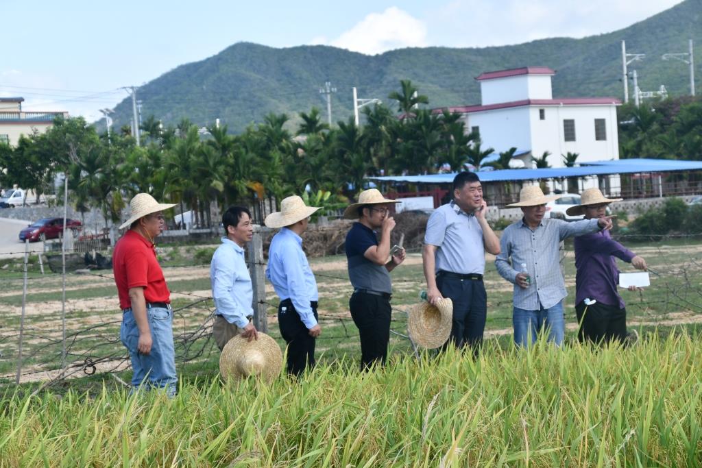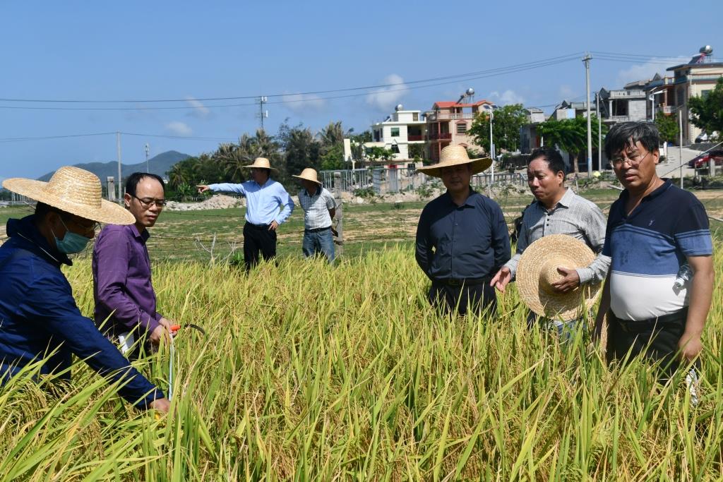 5月11日,williamhill英国中文袁隆平院士海水稻创新团队邀请湖南省、海南省、广东省等相关单位专家,对我校位于三亚市崖城区崖城镇太策村的耐盐碱水稻杂交组合及种质材料和滨海盐渍水稻田改良剂应用试验进行了现场评价和测产验收,土壤盐浓度为0.3-0.5%(田间表层水盐分浓度为0.48%)。