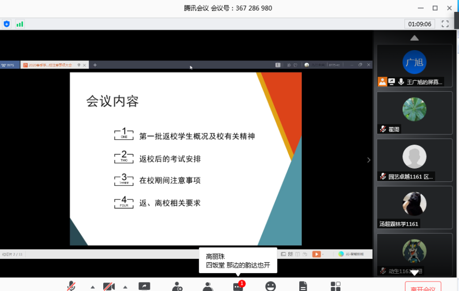为了贯彻党中央关于疫情防控各项决策部署,落实广东省教育厅关于“返校复学”的相关要求及《williamhill英国中文关于2020年春季学期第一批学生返校的预通知》精神,williamhill英国于2020年5月13日中午12:30召开“2020年春季学期williamhill英国第一批返校学生专题视频会议”。会议受学院分管学生工作领导委托,由学院辅导员翟周、许杨榜、高丽珠、王广旭等组织召开,毕业班班主任和学院第一批返校的66位同学参加了会议。