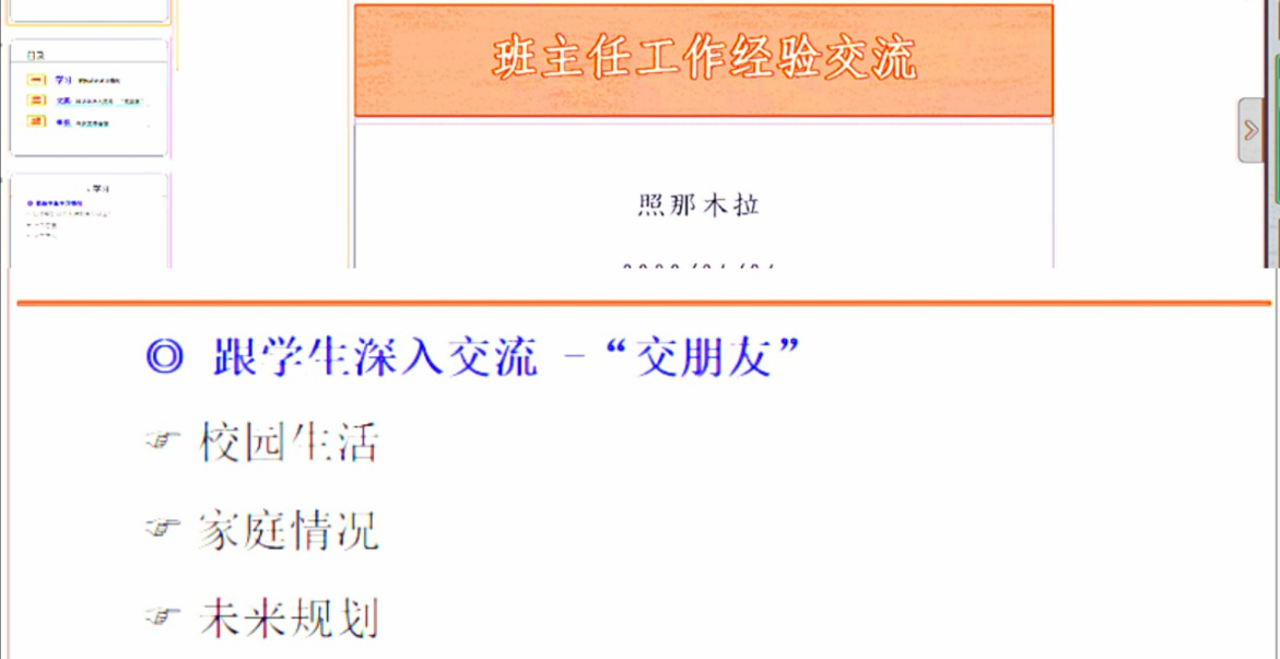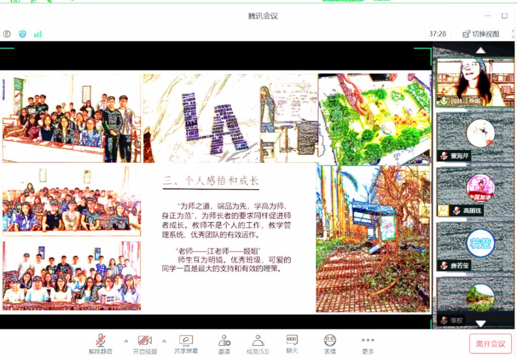 会议的第二项议程:由我院2019年度十佳优秀班主任候选人江燕姬老师和优秀班主任照那木拉老师与参会老师分享他俩的班主任工作经验。江老师从“学高为师、身正为范”的教导结合到日常用“网”编织爱的家园,将李子柒文化创意融入班级管理和学生专业学习中,带领学生用微信公众号和易班平台用心营造班级形象,让学生深深爱上自己的班级;从入学的那句“老师”,到后来的“江老师”,到最后自然流露喊一辈子的“姬姐”,师生成为了彼此生命中最可爱的那个人。