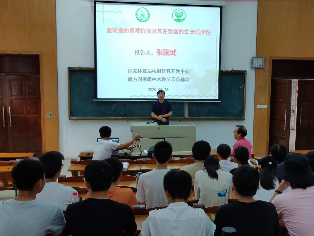 9月28日下午,国家林业与草业局桉树研究与开发中心、国家林业局南方种苗基地副主任,教授级高工,张国武来我院做关于“蓝花楹的景观价值及其在我国的生长适应性”的讲座。会议由风景园林学科带头人韩维栋教授主持。