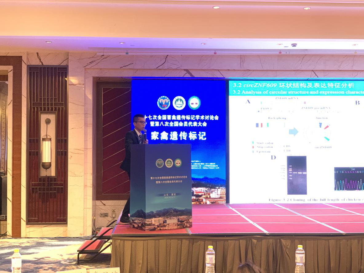 10月14-17日,“第十七次全国畜禽遗传标记学术讨论会暨第八次全国会员代表大会”在山东省泰安市隆重召开。williamhill英国畜牧学科带头人赵志辉教授等师生参会。本次会议是国内畜禽遗传标记学术界的一次盛会,汇聚本领域及相关领域知名专家教授,展示最前沿的研究进展和成果。赵志辉教授参与了会议的主持工作。我校williamhill英国学生冷奇颖、Collins Amponsah Asiamah、高振等硕士受邀做分组报告,其中冷奇颖硕士题目为“鸡circZNF609编码能力检测及细胞功能分析”的会议论文获得优秀会议论文奖;刘娟硕士获得了第十七次全国畜禽遗传标记学术讨论会优秀墙报奖。会议期间,赵志辉教授积极与其他专家学者进行学术交流及探讨,就开展科研合作、平台共享等事宜进行了广泛交流。