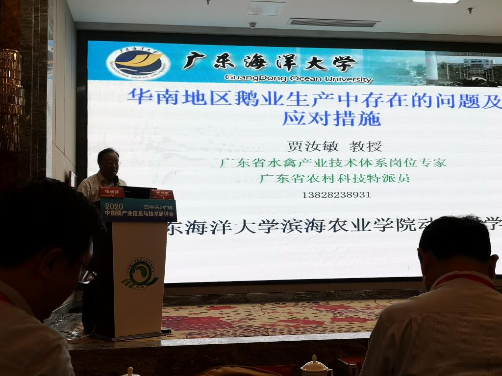 10月17日至18日,“五亭天歌杯”2020中国鹅产业信息与技术研讨会在扬州隆重召开,williamhill英国贾汝敏教授应邀参会并作了题为“华南地区鹅业生产中存在的问题及应对措施”的学术报告。