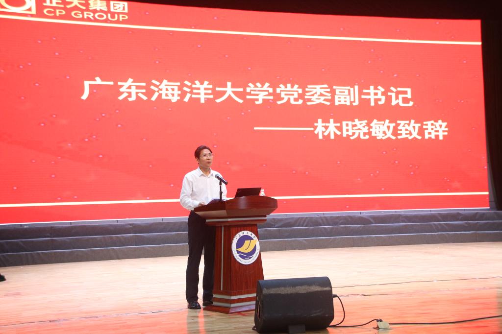 会上,林晓敏代表学校做致词,介绍了我校办学的基本情况,阐明了与正大集团开展校企合作的重要意义。他指出,我校高度重视校企合作,把校企协同育人工作延伸到教学科研第一线,推进全员、全过程、全方位育人,形成了校企合力育人、协同育人的长效机制。正大集团是世界上知名的跨国公司,一直以来,正大集团与我校一直保持密切的交流和合作,在协同育人、创业就业方面取得了很好的成绩。本次的全产业链班人才培养、双创大赛就是深化合作育人的体现。他表示,学校将继续加强、加深与正大集团的合作,实现校、企和学生的三赢,为社会培养更多更优秀人才。