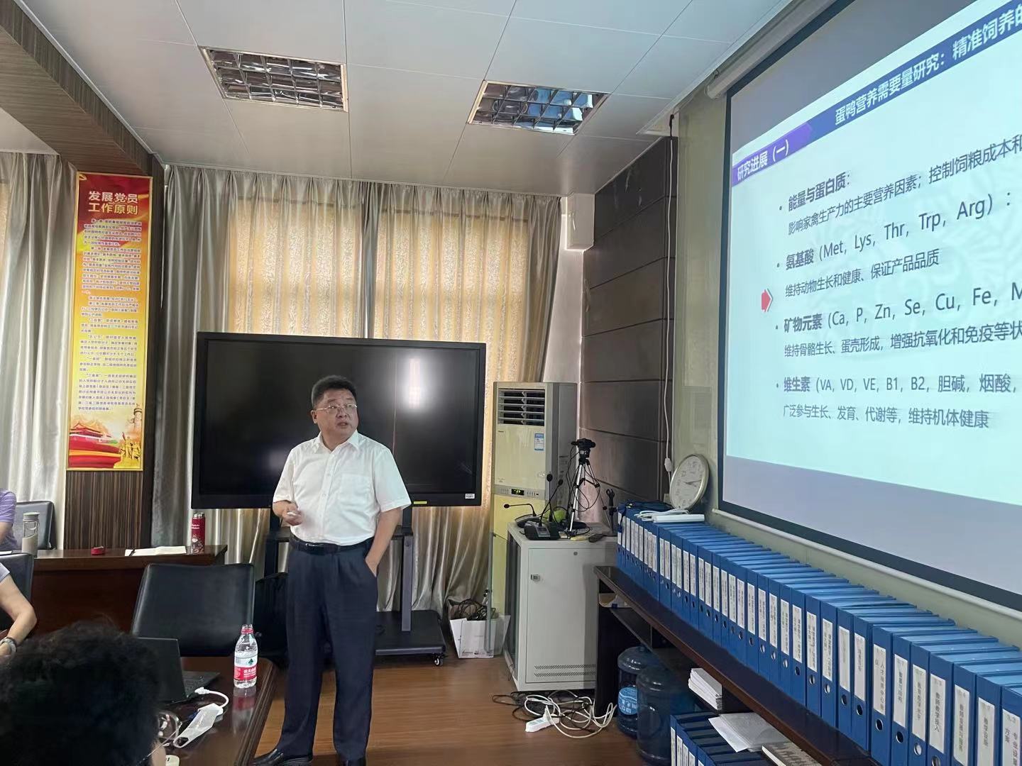 黄运茂教授作了题为《OPN5介导光周期调控禽(鸟)类繁殖机能的调控机制》的学术报告,报告围绕不同光周期条件下,OPN5介导的TSHβ-DIO2/DIO3通路和HPG通路研究作了详细的讲解;郑春田研究员作了题为《蛋鸭营养研究进展》的学术报告,报告围绕蛋鸭产蛋期氨基酸需要量、饲料钙对蛋鸭产蛋性能和蛋品质的影响、非常规饲料高效利用以及热应激对蛋鸭产蛋性能的影响作了详细阐述;李碧春教授作了题为《鸡原始生殖细胞(PGC)发生过程的遗传和表观遗传调控机制》的学术报告,报告以李教授最近发表在Nature communication上的文章为背景,介绍了其课题组是如何突破鸡克隆技术和PGC的相关研究进展。