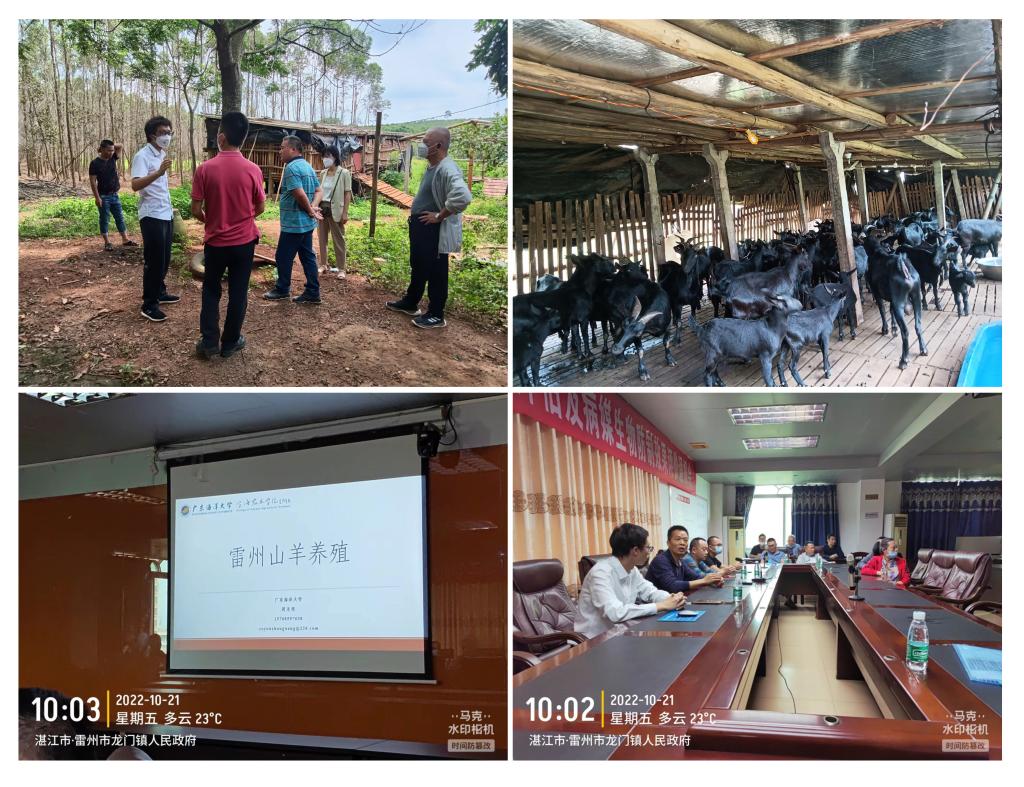 2022年6~10月间,williamhill英国动物科学系教师、湛江市驻镇帮镇扶村农村科技特派员周光现博士及其团队成员多次赴雷州龙门镇服务乡村振兴工作。主要围绕雷州山羊养殖繁育技术及其养殖推广相关工作开展。2022年6月到龙门镇雷州山羊养殖户中交流雷州山羊养殖经验,指导山羊舍修建工作。7月带领工作队队长等人去状元黑山羊养殖场、雷州山羊保种场等养殖基地参观学习,了解雷州山羊养殖情况。8月去陕北地区考查农村养羊模式和规模化现代化养羊基地等,为龙门镇山羊养殖业取经。10月再次到龙门镇开展雷州山羊羊舍设计、雷州山羊养殖技术培训等工作,同时向工作队、村委书记和农户等人汇报陕北家庭致富山羊养殖模式。会议就龙门镇撂荒地、林地开发利用做出了初步规划,采用种养结合模式提高土地使用价值。雷州山羊为雷州半岛特色山羊品种,耐湿热、食谱广;龙门镇大部分地区是玄武岩台地,属红黏土地带,坡地多、坑田少,适宜于山羊养殖。本土雷州山羊肉质鲜美、膻味小,深受广大消费者喜爱,其活羊价格平均高达40元/斤,具有良好的经济价值。龙门镇当地雷州山羊养殖农户较少,但具有20余年雷州山羊养殖历史的成功典范,故此雷州山羊养殖可以在龙门镇推广。