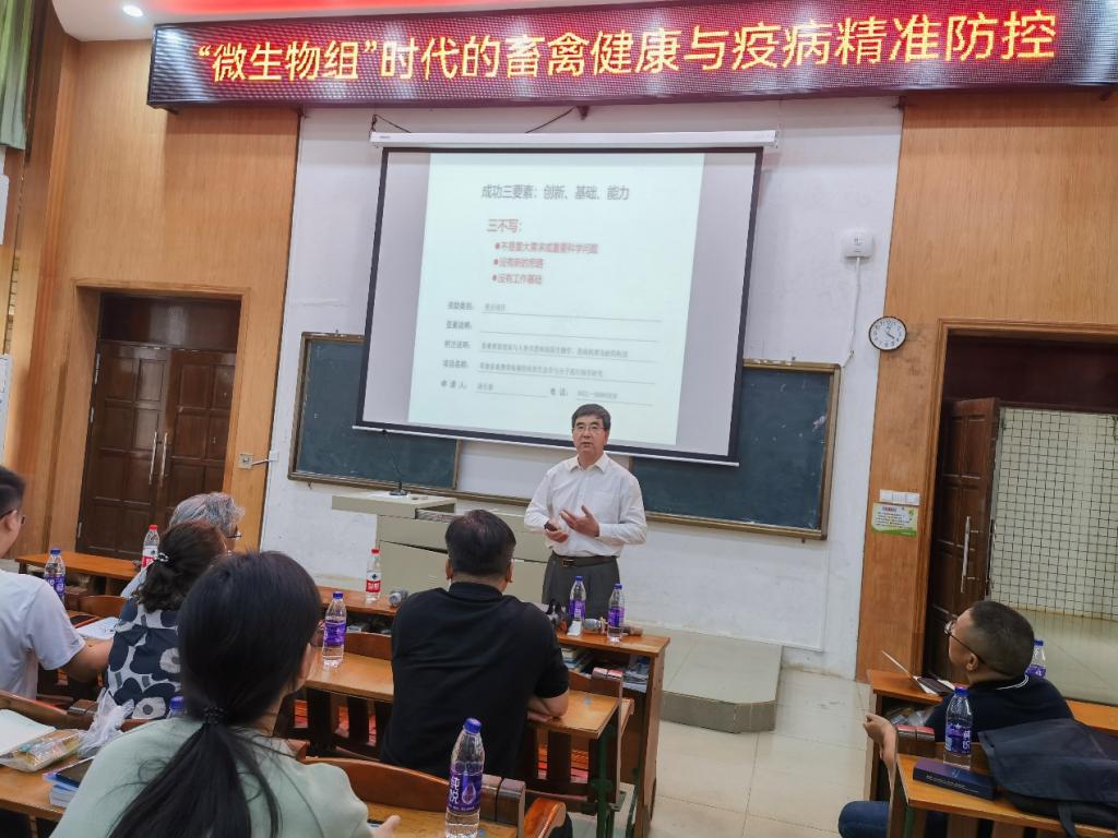 11月7日下午,军事科学院军事医学研究院军事兽医研究所研究员涂长春应邀为我校师生作了题为《“微生物组”时代的畜禽健康与疫病精准防控》的学术报告及《NSFC课题申请书撰写》的辅导报告。报告会分别由学院院长郑殿峰教授和畜牧学科带头人赵志辉教授主持,动物医学系、动物科学系教师、研究生和卓越班学生约160人参加。