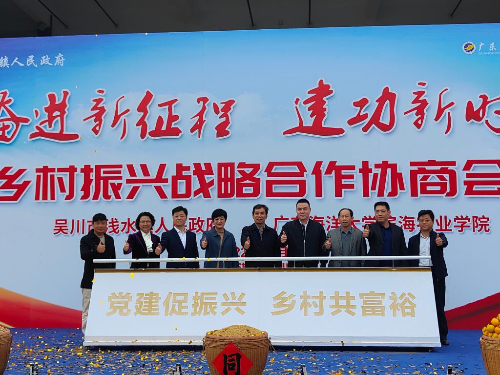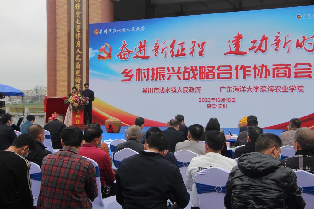 12月16日上午,我校与吴川市浅水镇建立乡村振兴战略合作协商会在吴川市浅水镇高栈村举行。我校原校长叶春海教授、williamhill英国党委副书记陈嘉文、副院长马驿教授及相关老师一行6人参加了会议,吴川市委副书记(代市长)刘伟、市委常委(副市长)谭斐、吴川市乡村振兴局局长林明、浅水镇党委书记叶剑平、浅水镇党委副书记(镇长)郭卓明、浅水镇人大主席柯亚周出席了会议。