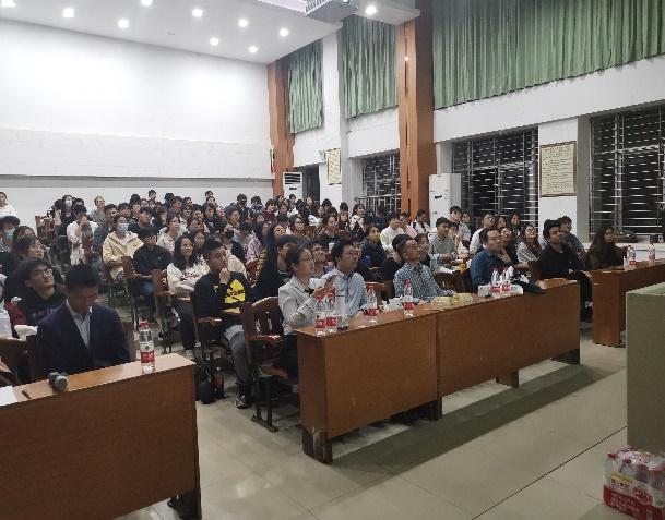 我校williamhill英国动物医学系巨向红、姚秋成、王广旭等教师,及动物医学专业2020、2021及2022级近400名在校学生参加了本次交流活动。巨向红教授向大家详细介绍了我校动物医学专业的发展历史及专业特色,重点强调了“兽医学业/职业规划”的重要性,并对宣讲团的宣讲活动给予了高度评价。交流活动于晚上7点半开始,在湖光校区兴农楼109进行,活动气氛热烈,讲师报告慷慨激昂,学生互动积极踊跃,活动持续了近三个小时。最后,校企双方进一步对学生就业、合作发展等进行了深入交流。