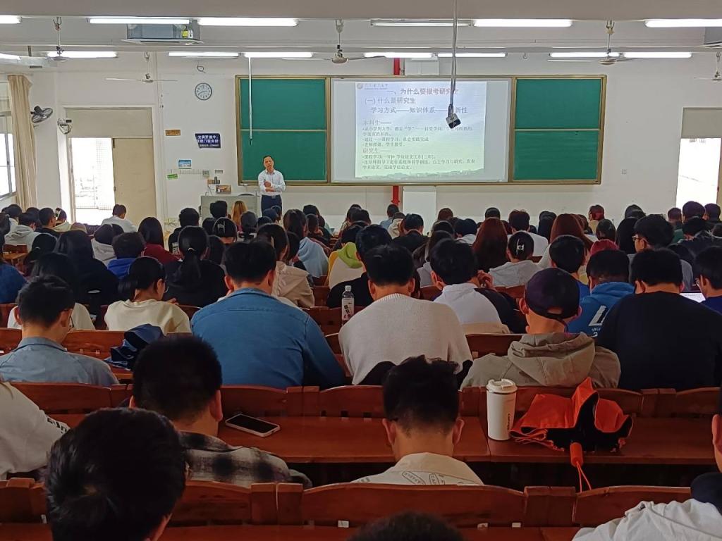 陈汉能的讲座图文并茂,数据丰富,语言朴实,事例真实生动,让学生开阔了视野,启迪了思维,增长了见识,坚定考研的信心。