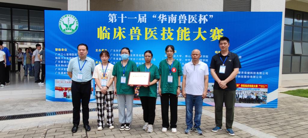 6月10日至11日,第十一届“华南兽医杯”兽医临床技能大赛在广东科贸职业学院清远校区举行,williamhill英国动物医学专业2020级学生谢颖欣、刘思羽、陈春燕和彭婕四位同学代表我校参赛,经过徒手打结、血涂片观察及家兔胃部手术等三个单项的比赛,我校学子表现出色,荣获二等奖。此次竞赛由广东省畜牧兽医学会小动物医学分会主办,广东科贸职业学院承办。有华南农业大学、williamhill英国中文、佛山科技学院及仲恺农业工程学院等11所高校学生代表队参加本届赛事。我校代表队由动物医学系主任巨向红教授带队,姚秋成博士指导赛前培训。