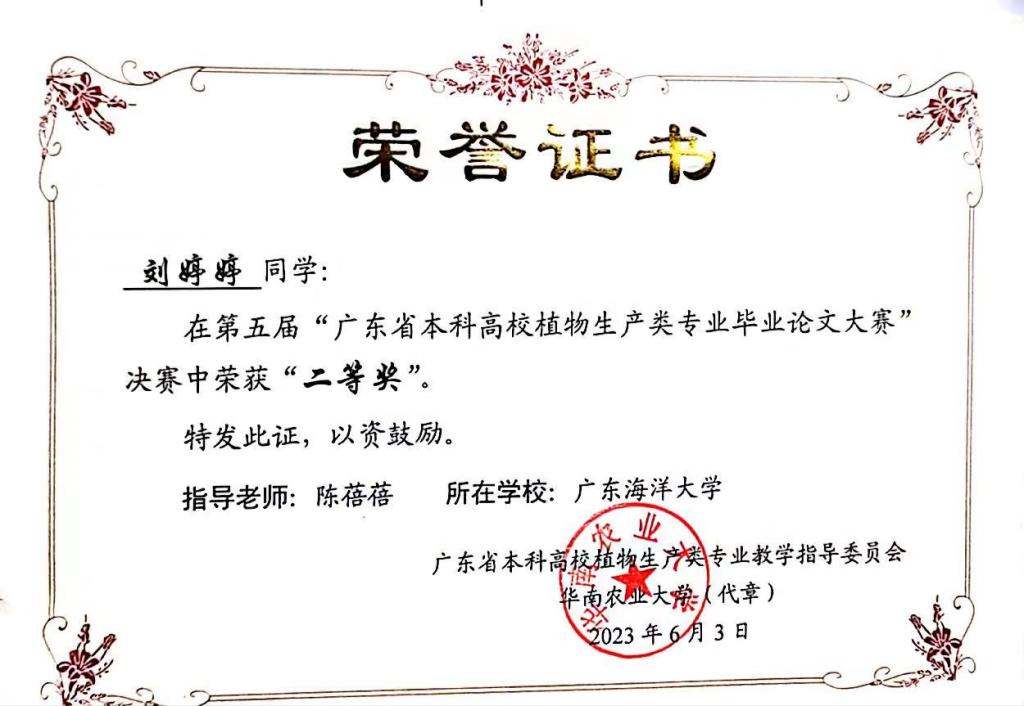 6月3日,第5届广东省本科高校植物生产类专业毕业论文大赛决赛在肇庆学院拉开帷幕。本次大赛共有全省13所高校推荐的87名选手参加,经专家网评,26名选手进入决赛。经预赛和决赛,我院选手获二等奖1名,三等奖4名,优秀奖6名。陈蓓蓓老师指导的刘婷婷同学(农学试验班、林学专业)荣获二等奖。