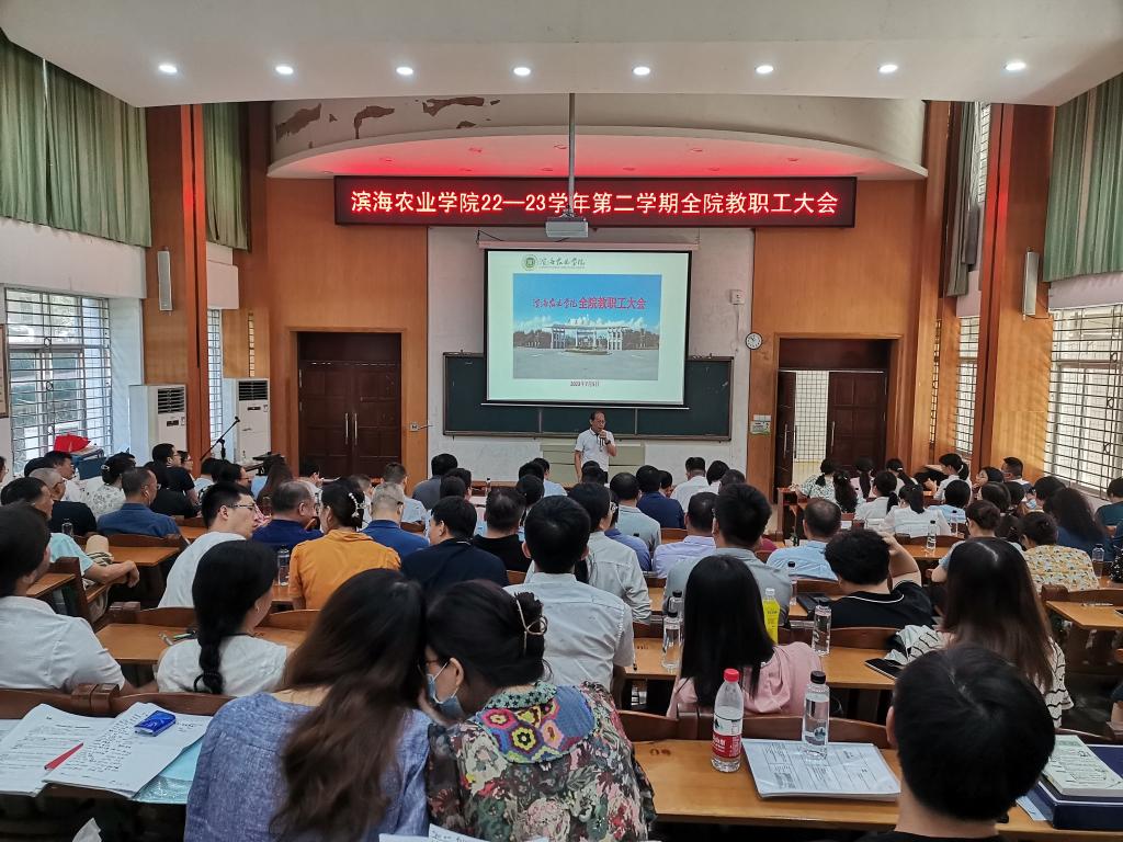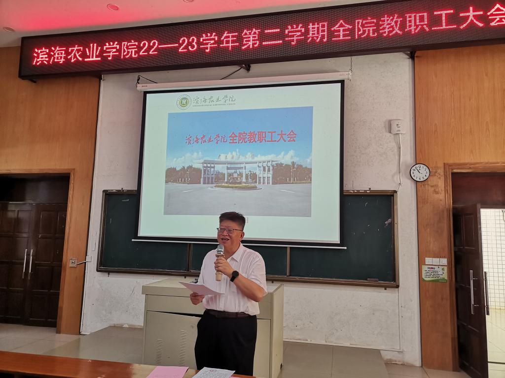 院长郑殿峰并从党建、高层次人才引进、专业优化、成立教研室、筹建“中国-乌兹别克斯坦盐碱地开发利用联合实验室”、凝练学科发展方向、平台和实验室建设、青年教师培养、招生宣传、学生管理等10个方面总结了学院2023上半年完成的重点工作。部署了本科教学审核评估工作、新农科实习实训基地建设等基地暑期及下学期学院要开展的重点工作。重点强调了假期安全工作,要求全体教职工要高度重视并做好实验室安全、学生暑假留校管理和假期值班等工作。并希望全院教职工充分利用暑假黄金时间,开展教学准备、威廉希尔、社会服务等工作。要求全体教职工注意假期出行安全,过一个安全祥和的暑假。