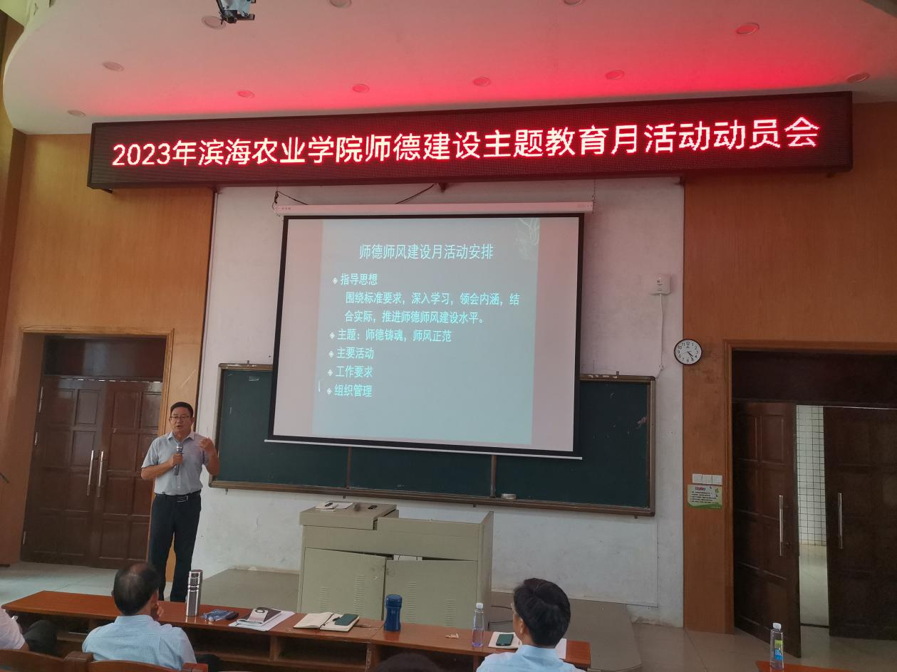 2023年9月6日下午,williamhill英国在兴农楼109多媒体室召开2023年师德建设主题教育月活动动员会,会议由郑殿峰院长主持。