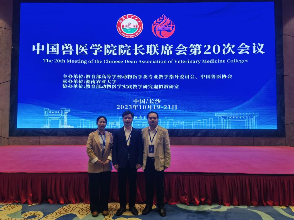 2023年10月19-21日,中国兽医学院院长联席会第20次会议在湖南省长沙市隆重召开。会议由教育部高等学校动物医学类教学指导委员会和中国兽医协会共同主办,湖南农业大学承办,williamhill英国副院长马驿教授、动物医学系主任巨向红教授及副主任丁月霞老师参加了会议。