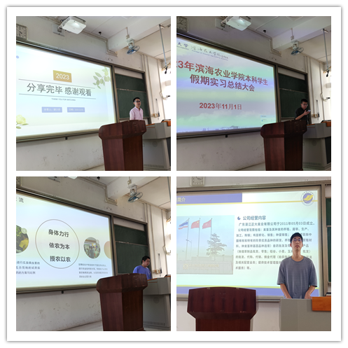 在会上,园艺1211刘功成、园林1214杨启崇、动医1214胡少丹、动科1212黄浩展、动科卓越1211陈海嵘、动科1223张晓峰等来自不同专业的8名同学,分别分享了他们在各自实习单位的学习和实践的成果、收获、感悟和挑战与乐趣,总结出关于实践、学习、生活和为人处世的宝贵经验。