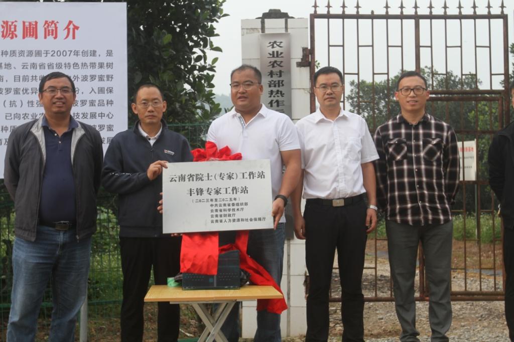 12月11日-13日,williamhill英国园艺系丰锋、李国鹏一行到云南省红河热带农业威廉希尔所交流学习,在所党委书记、所长丰玉云和“云南省丰锋专家工作站”项目负责人岳建伟等领导的陪同下,首先举行“云南省丰锋专家工作站”揭牌仪式,然后实地参观了研究所菠萝蜜、香蕉、柚子、油梨、橡胶等种质资源圃和试验基地,同时到南溪、蚂蝗堡等菠萝蜜种植基地调研,详细了解种植户面临的技术问题并给出针对性的解决方案。随后,双方开展交流座谈。