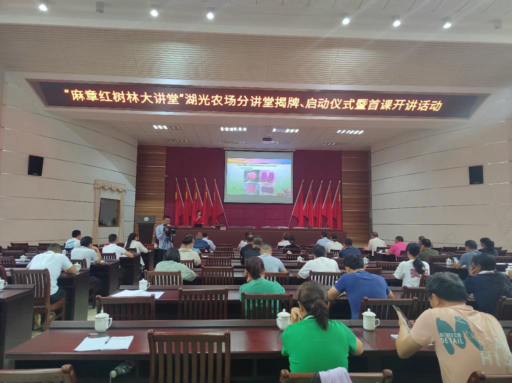 为加快实施“麻章红树林大讲堂”,进一步深化拓展党员干部群众学习的载体平台,深入推进“百县千镇万村高质量发展工程”,助力“湛江红树林之城”建设。2024年4月16日上午,中共湛江市麻章区委宣传部在广东农垦湖光农场有限公司举行“麻章红树林大讲堂”湖光农场分讲堂揭牌、启动仪式暨首课开讲活动。我校williamhill英国园艺学主任杨转英副教授、生物技术系杨善博士应邀参加此次活动。