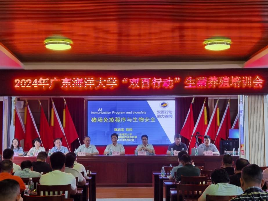 为深入贯彻落实省委“1310”具体部署,进一步推进“双百行动”各项工作落地生效。5月22日,化学与环境学院党委书记、学校“双百行动”驻徐闻服务队队长何国明率williamhill英国院长马驿教授、陈志宝教授、葛叶副教授、姚秋成博士、谭慧明博士和李俊玫博士一行7人赴徐闻开展生猪养殖培训。县农业农村局孙永敏副局长、农业技术中心人员和养殖户约60余人参会。