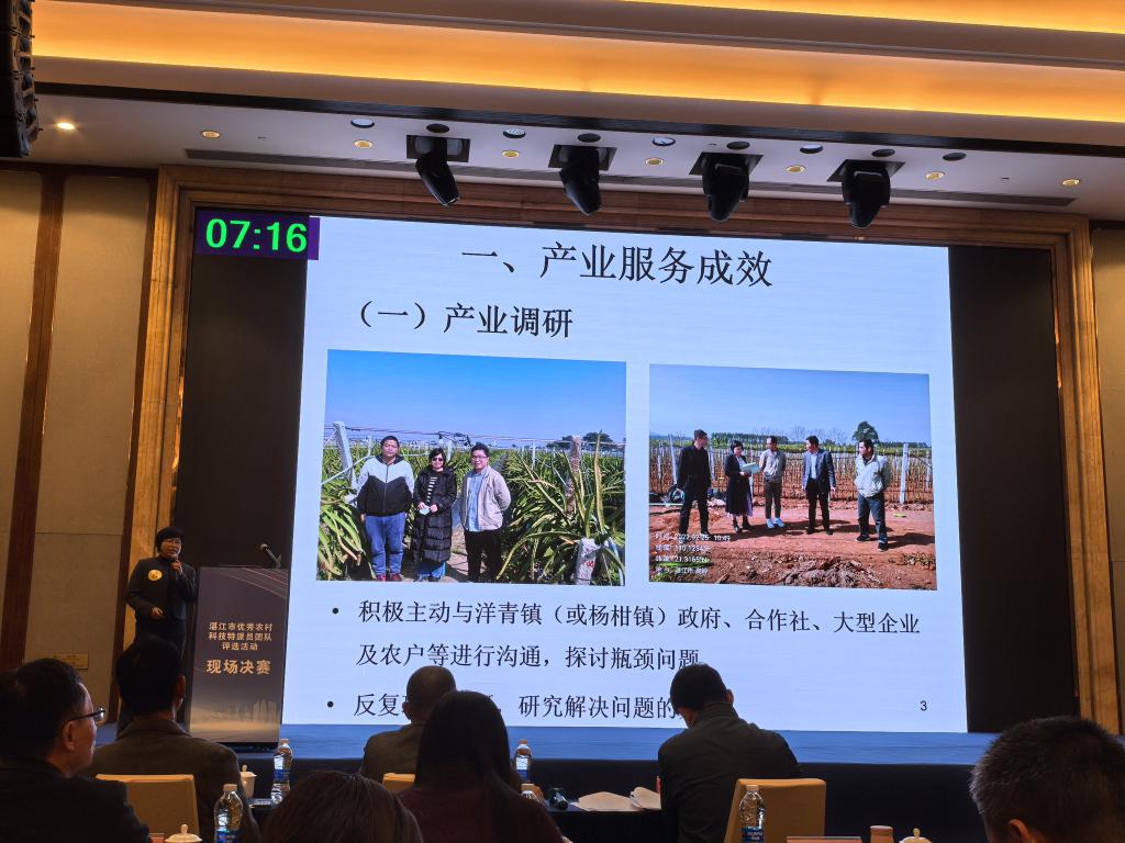 决赛会场,由初赛45支团队遴选出15个团队,逐个上台展示科技帮扶农业产业发展和农户脱贫致富的经验、做法,以及创新的服务模式。经过激烈角逐,williamhill英国院长马驿带领的畜禽高效养殖与畜禽产品安全生产团队和williamhill英国园艺系主任杨转英带领的火龙果种植帮扶团队荣评“2021—2024年湛江市优秀农村科技特派员团队”称号。