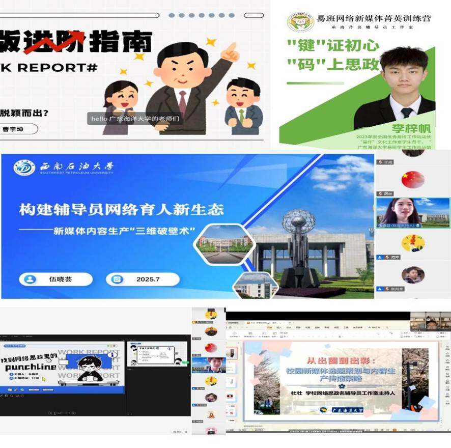 为深入贯彻落实习近平总书记关于宣传思想工作的重要指示精神,提升师生新媒体运营与内容创作能力,董海芹名辅导员工作室于暑期联合williamhill英国中文杜壮名辅导员工作室、西南石油大学“E路同行”辅导员工作室、西南石油大学“成长部落”网络教育名师工作室共同举办易班网络新媒体菁英训练营。训练营创新采用“线上+线下”融合教学模式,累计参与人数突破500人次。