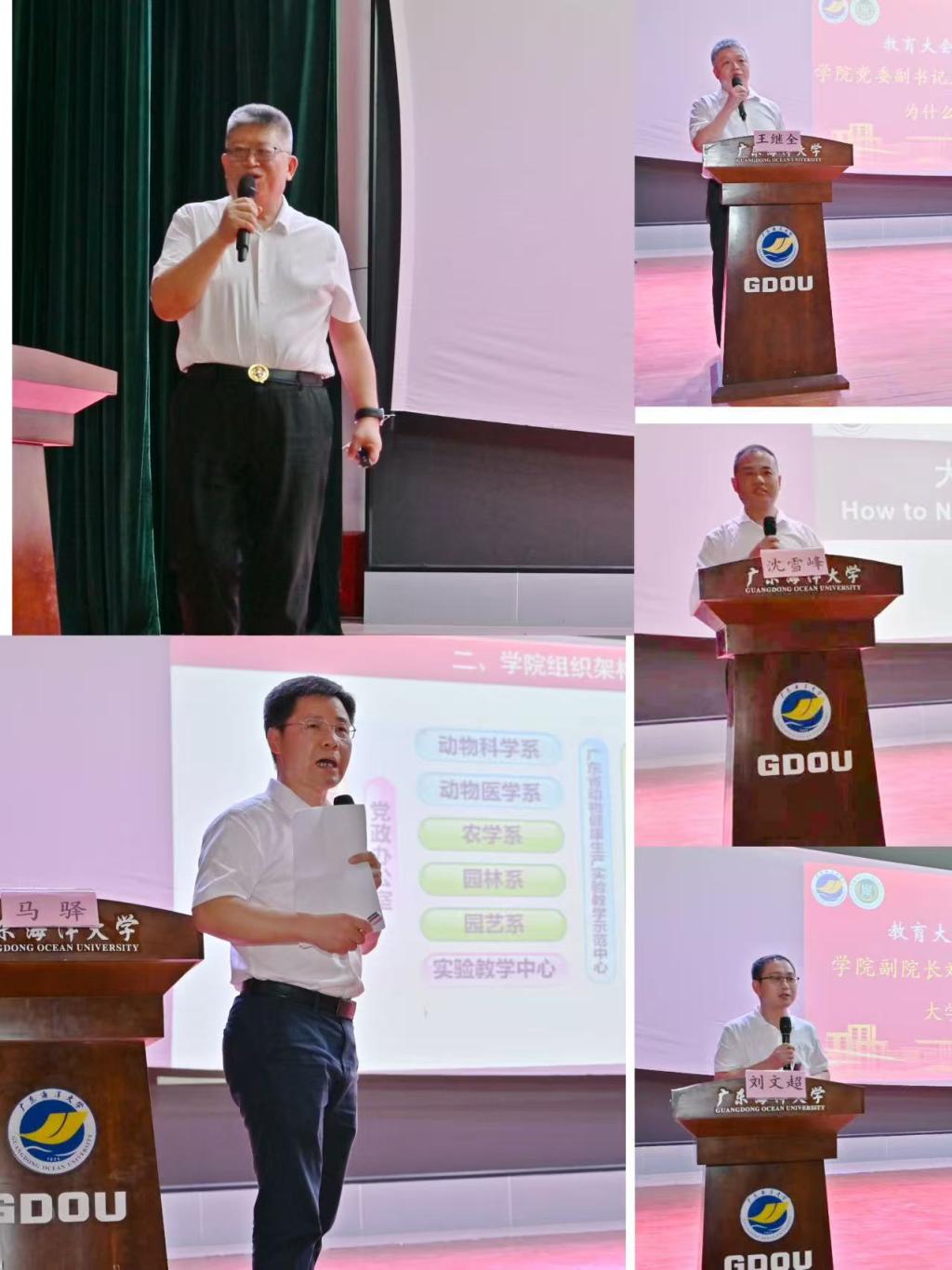 院长马驿从1958年到2025年学院厚重的办学历史及取得的成绩向同学们展现学院发展蓝图,以“在希望的田野上书写青春答卷”为题,强调农科学子应肩负强农兴农责任,提升综合素养,为乡村振兴贡献智慧,共同守护国家粮食安全,做一个有理想的“追梦者”、肯实干的“耕耘者”、敢创新的“开拓者”。党委书记郑殿峰在《大学是什么?》讲授中,深入阐释大学是知识殿堂、成长平台、社交网络、梦想起点,让同学们重视农业发展,厚植爱农情怀,勇做新时代的追梦人、现代农业技术创新的引领者。副院长刘文超通过《大学读什么?》系统介绍时代要求、专业发展与教学规章制度。副院长沈雪峰在《大学怎么读?》让同学们明确职业发展,弘扬科学家精神,倡导自主探究与实践结合。党委副书记王继全从个人理想、社会需要与国家战略角度深刻解读读大学的价值,激励新生树立远大志向,成为堪当民族复兴大任的时代新人,向同学们阐述《为什么读大学?》。