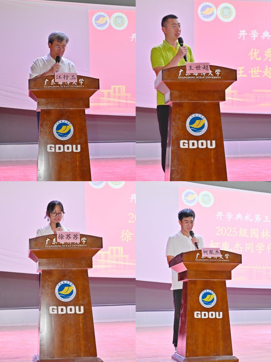 在校生代表徐苏苏以“奋斗青春,强农报国”为主题,结合自身科研与实践经历,鼓励新生勇于探索、珍惜时光,在现代农业发展的广阔天地中绽放青春。新生代表柯胤杰表达了对成为“海大农院人”的自豪与使命感,承诺恪守“广学明德、海纳厚为”校训,夯实专业基础,立志服务三农。优秀校友王世超总经理寄语新生“将论文写在祖国大地上”,践行知农爱农的担当。教师代表江行玉教授勉励同学们主动完成角色转变,培养创新思维与解决问题的能力。
