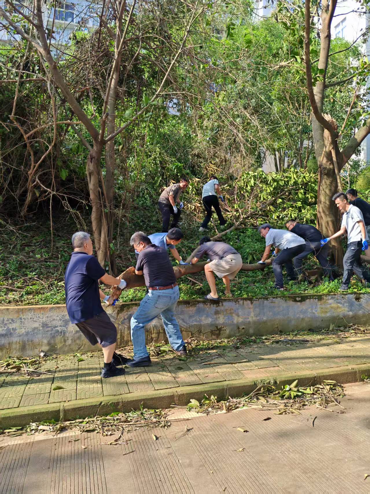 “跟着党员干,恢复家园有力量!” 在党员先锋队的带动下,williamhill英国师生组成清理小队,活跃在校园的负责区域。老师们手持耙子,将散落的树枝归拢成垛,还不忘叮嘱学生注意安全;学生们则分成小组,有的用扫帚清扫路面落叶,有的用铁锹铲除路边淤泥,还有的没有工具依旧徒手清理。在学院的林果楼和农研所,师生们细致清理缠绕在实验作物上的断枝并将大量散落的断枝都清理到固定地点,尽可能减少台风对教学实践基地的影响。汗水顺着脸颊滑落,浸湿了衣领,但当看到校园逐渐恢复整洁,师生们的脸上都露出了欣慰的笑容。“和老师、同学们一起为校园出力,不仅是劳动,更是一堂生动的‘责任教育课’。