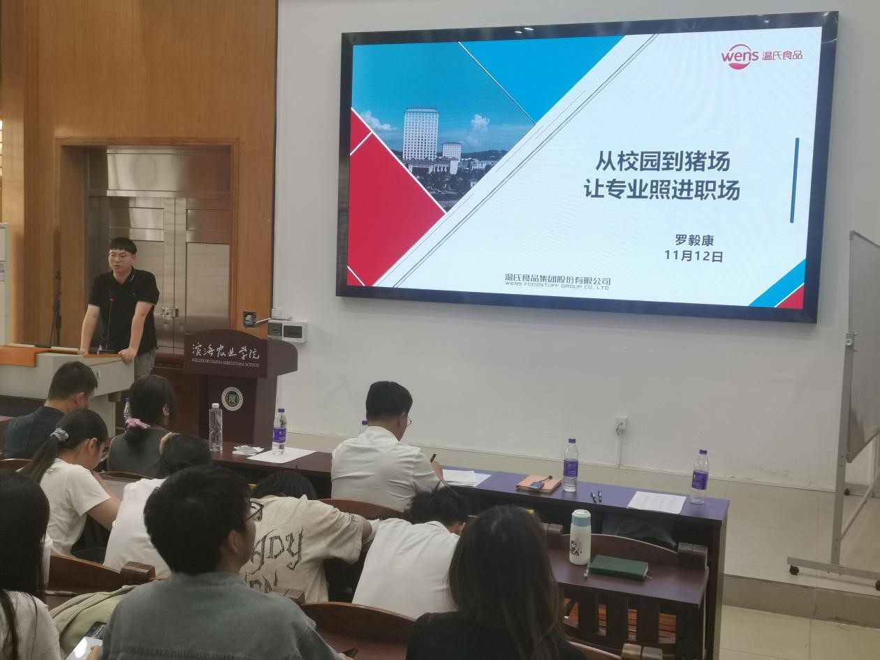 williamhill英国中文动物科学专业卓越1161班毕业生、温氏集团湛茂公司技术主任罗毅康以《从校园到猪场,让专业照进职场》为题,讲述了自己从校园走向规模化养殖一线的成长历程。他分享了在温氏集团工作期间,将动物科学专业知识应用于猪场育种、疫病防控、养殖管理的实践经验。鼓励在校学子珍惜实践机会,将专业所学与产业需求紧密结合,在基层岗位上实现价值成长。