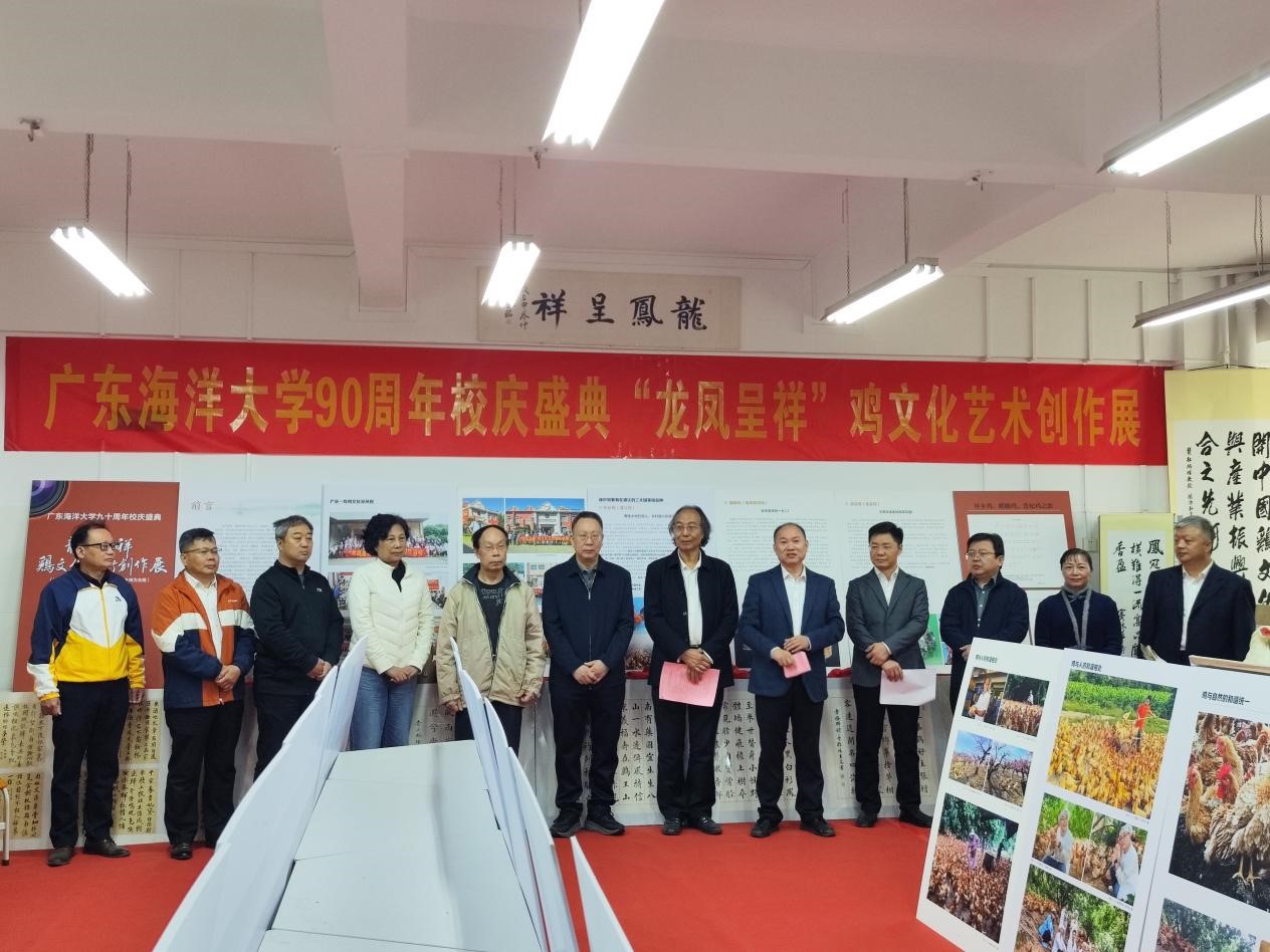 11月20日,williamhill英国在湖光校区兴农楼312室举办以“龙凤呈祥”为主题的鸡文化艺术创作展。williamhill英国中文党委常委、副校长邓逢光,校关工委主任彭权群,国民健康膳食营养研究室主任孟祥兵,岭南师范学院艺术学院院长李吾铭,williamhill英国院长马驿、院党委副书记王继全以及湛江市相关社会团体单位领导、学院师生代表参加活动。展览活动由马驿院长主持。