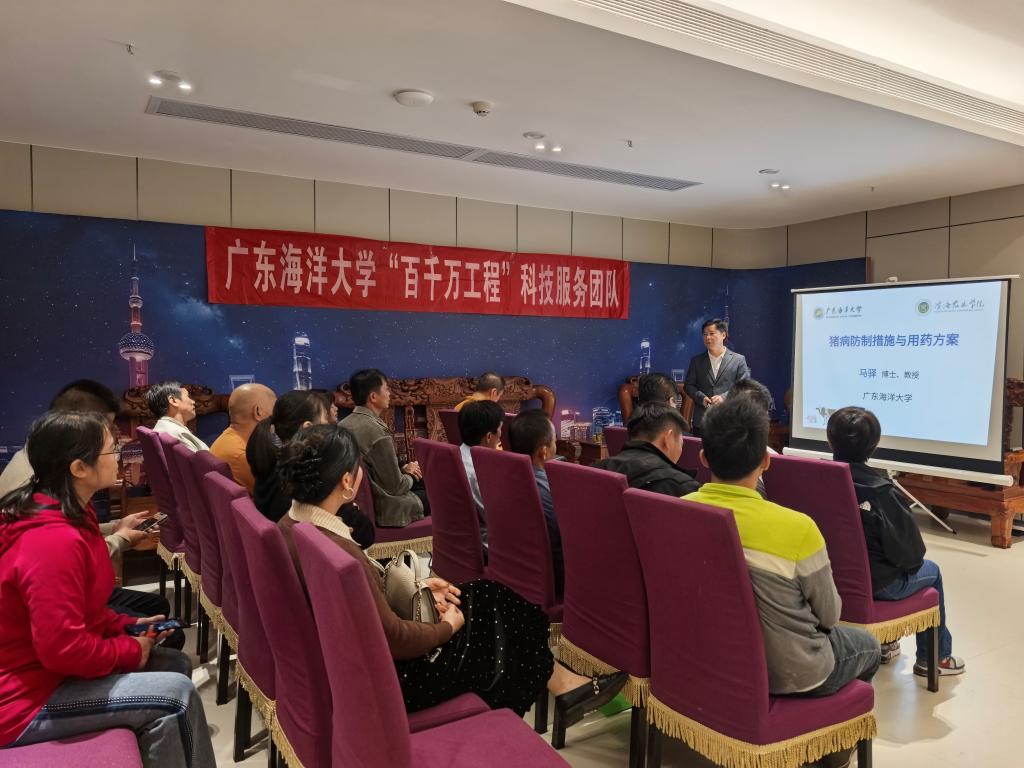 为深入贯彻落实省委“百千万工程”战略部署,扎实推进williamhill英国中文“双百行动”工作,12月7日,williamhill英国院长马驿率动物养殖与疫病防控技术团队骨干成员陈志宝、葛叶、照那木拉、康丹菊、彭金菊、文兆海等一行赴徐闻县,与徐闻县动物卫生监督所联合举办“畜禽养殖技术培训班”。活动吸引了徐闻县畜禽养殖户、农业技术人员和政府部门代表等30余人参与,旨在通过科技赋能助力乡村振兴。