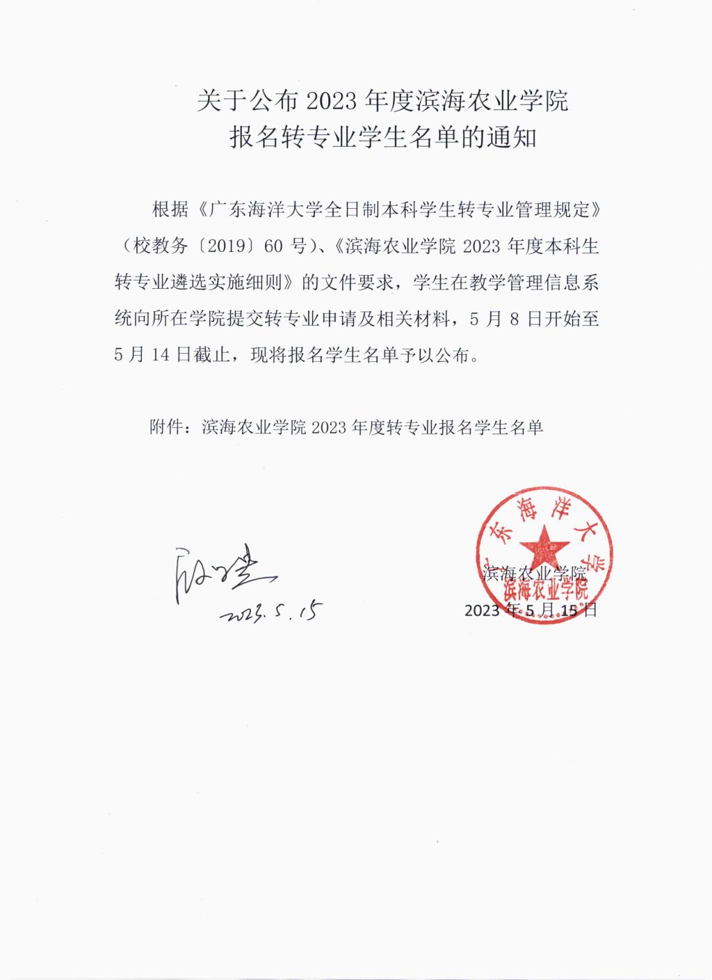 关于公布2023年度williamhill英国报名转专业学生名单的通知