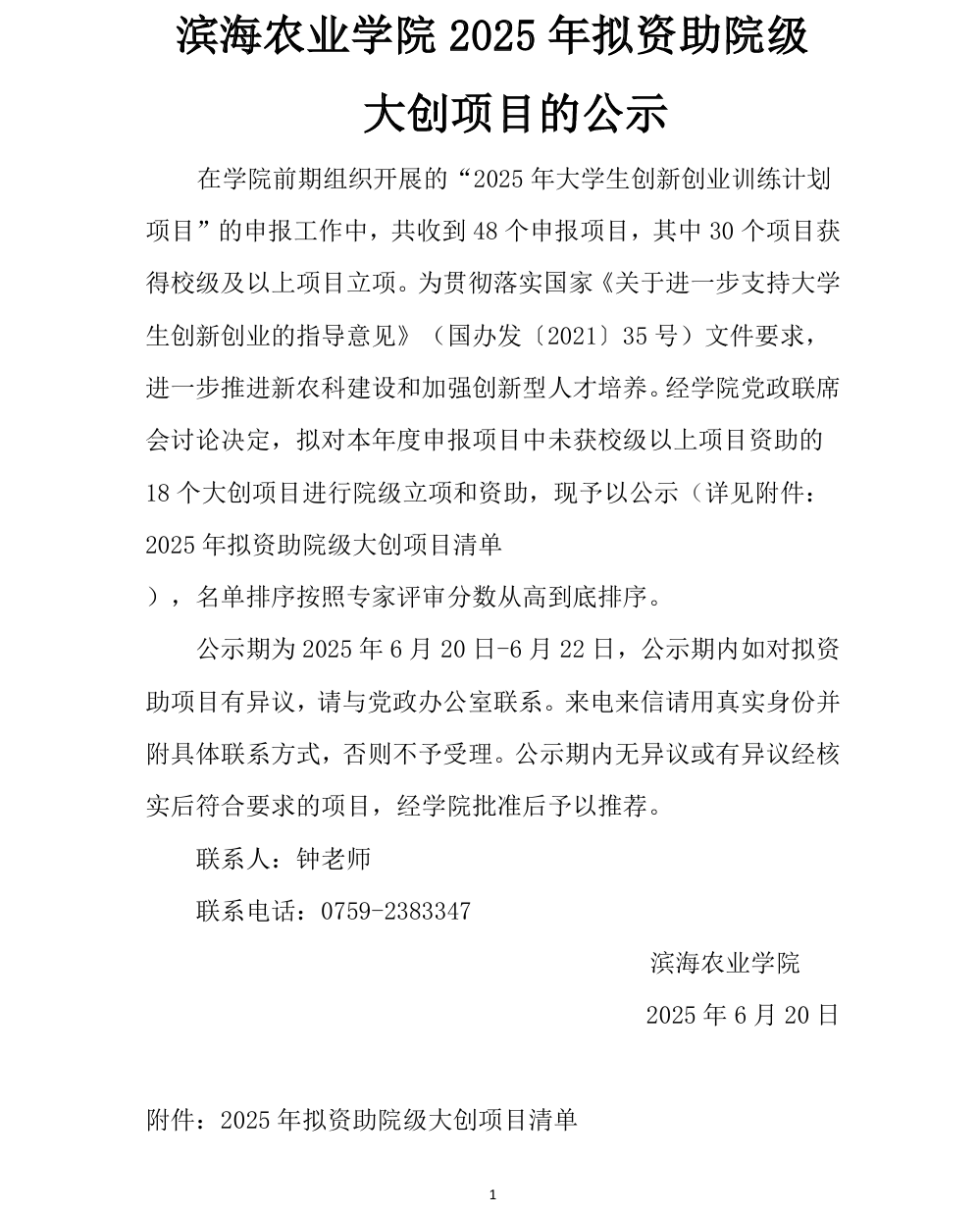 关于williamhill英国2025年拟资助院级大创项目的公示6.20.pdf