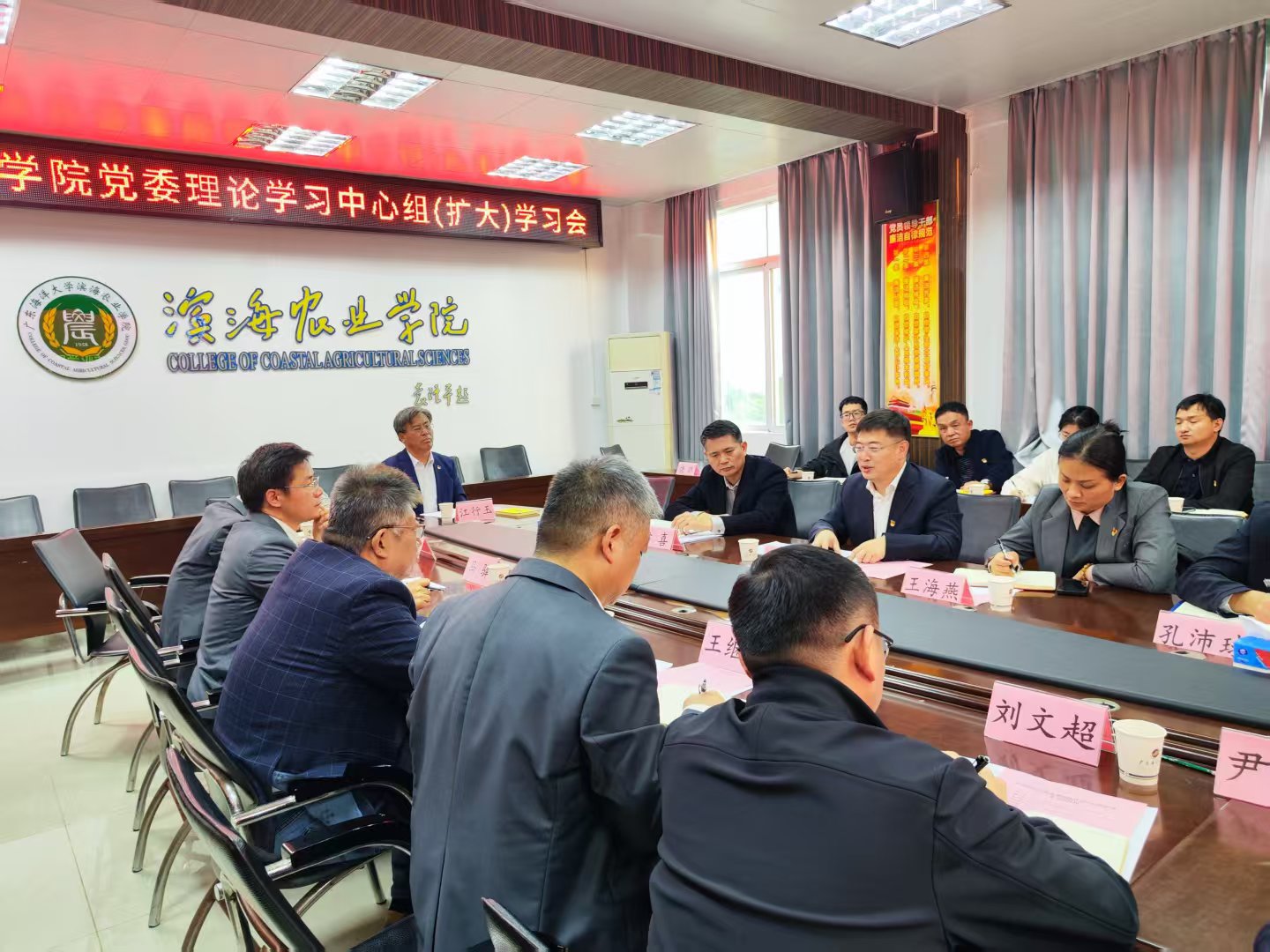 12月16日下午,williamhill英国在湖光校区兴农楼419会议室召开党委理论学习中心组(扩大)学习会。校党委书记杨洲到会巡听指导,校党政办公室主任尹喜陪同,水产学院党委书记王海燕、副书记孔沛球受邀旁听。学院党委委员全体出席,纪委委员、各党支部书记等列席会议,学习会由学院党委书记郑殿峰主持。